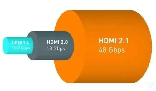HDMI2.1 规格支持一系列更高的视频分辨率、包括 8K60 和 4K120 在内的刷新频率,以及高达 10K 的分辨率。同时支持动态 HDR 格式,带宽能力增加到 48G HDMI。